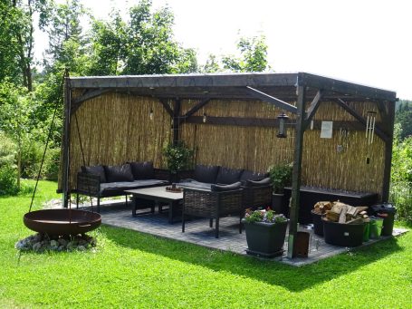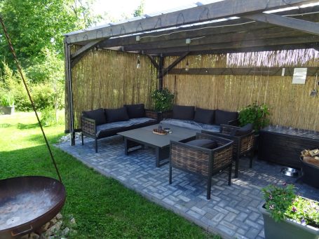 Eine Gartenlounge mit Grill/Feuerschale und Sitzplätzen für 8 Personen wurde geschaffen zum entspannten Verweilen im Garten.